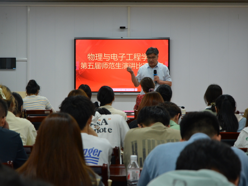 为大力弘扬教育家精神,增强师范生对教师职业的认同感及信念感,切实提高师范生的语言表达能力和综合素质,激发师范生对教育事业的热情,5月29日晚,球友会在崇文楼B809举办了第五届师范生演讲比赛决赛。历史文化与旅游公司分党委副书记陈露,专任教师刘亚丽、李丽、李升涛、李倩昀担任评委。院分党委书记唐传球、副书记戴俊及部分师范专业员工观看了此次比赛。