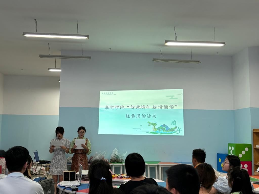 活动伊始,李玉琴介绍了端午节的历史背景和文化内涵。通过她的讲解,在场同学对端午节的由来、习俗及历史意义都有了更深入的了解。随后,藏族同学格桑达娃献上了精彩舞蹈《吉祥祝福》,将祝福传递给了在场的每一位观众。最后,来自2023级的同学沈寿贵、田雯清、孟鑫儒朗诵了爱国诗人屈原的经典作品《离骚》,赢得了同学们的阵阵掌声。