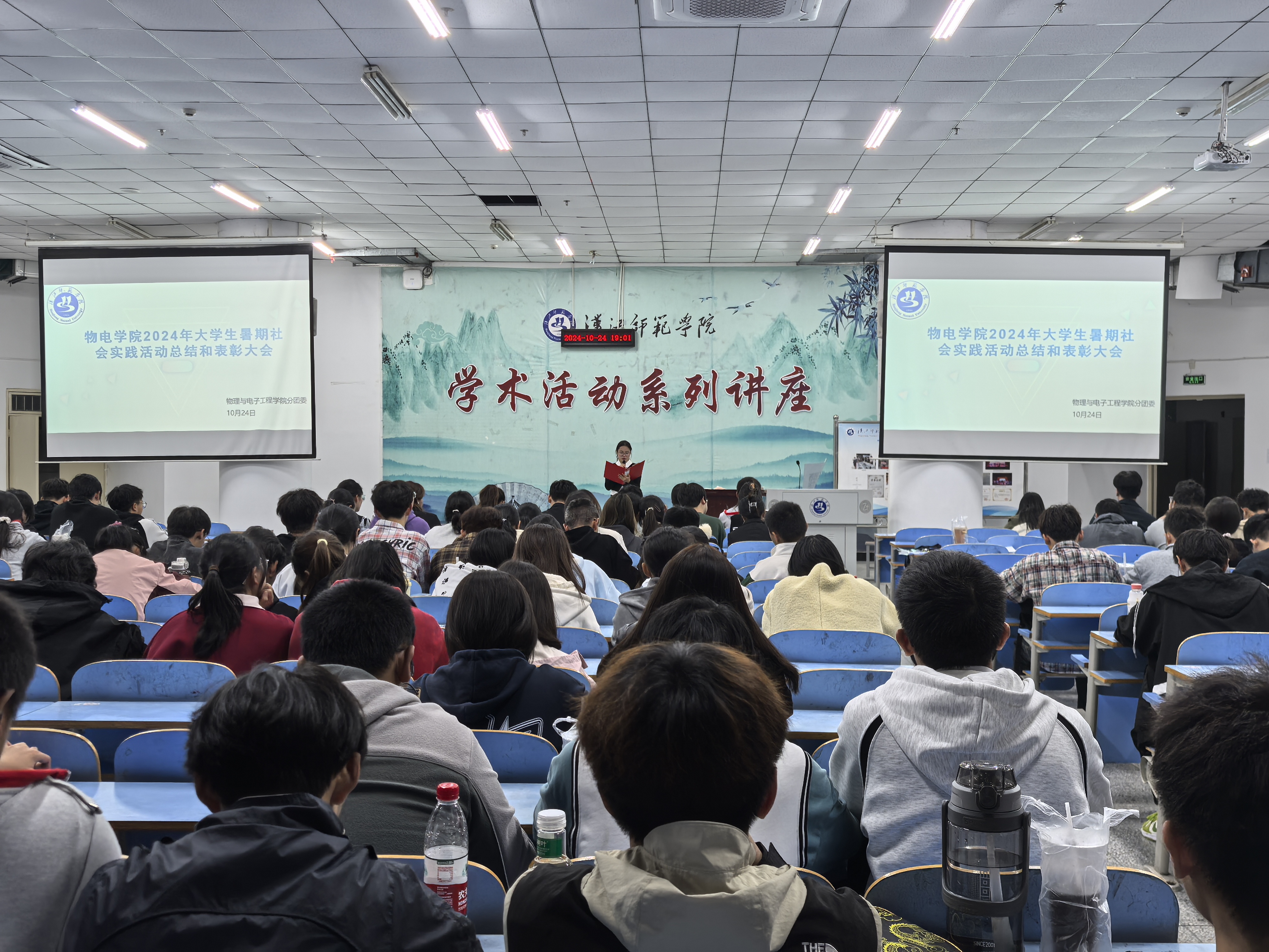 10月24日晚,球友会2024年暑期社会实践总结暨表彰大会在崇文楼C201举行,院分党委副书记戴俊,分团委负责人范志鹏,辅导员田梦谣、贺培参加会议并担任评委,各实践团队成员和200余名2024级员工现场观摩学习。