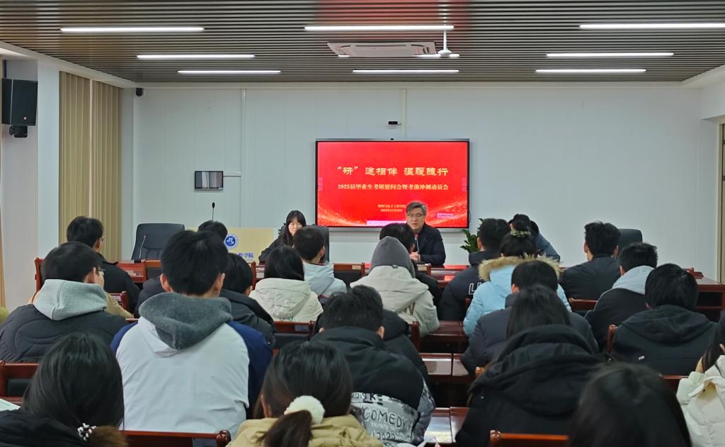 12月12日下午,球友会在崇文楼B809组织召开2025届毕业生考研慰问暨考前冲刺动员会。院分党委书记唐传球、副书记戴俊、学工办主任尹诗雅和辅导员贺培参会,共同为即将参加研究生入学考试的学子们加油鼓劲。
