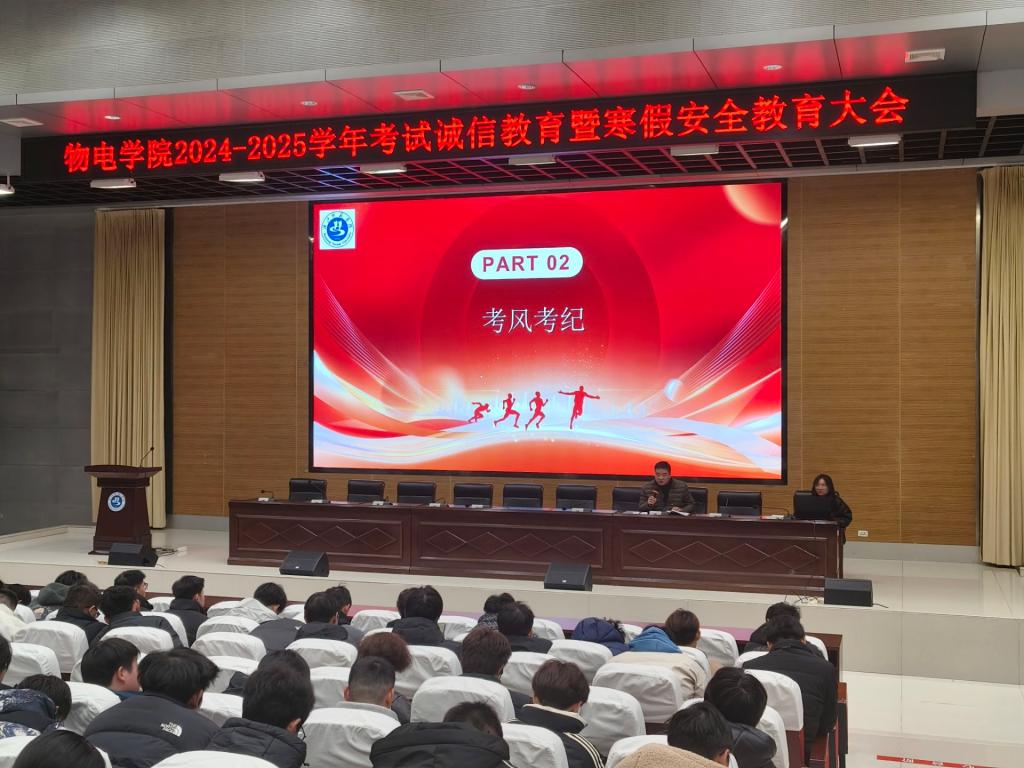 为严肃考风考纪,营造良好的期末考试氛围,增强员工诚信意识和安全防范意识,12月29日晚,球友会在图书馆学术报告厅召开诚信考试教育暨寒假安全教育大会。院分党委副书记戴俊、学工办主任尹诗雅和2024级全体同学参加会议。
